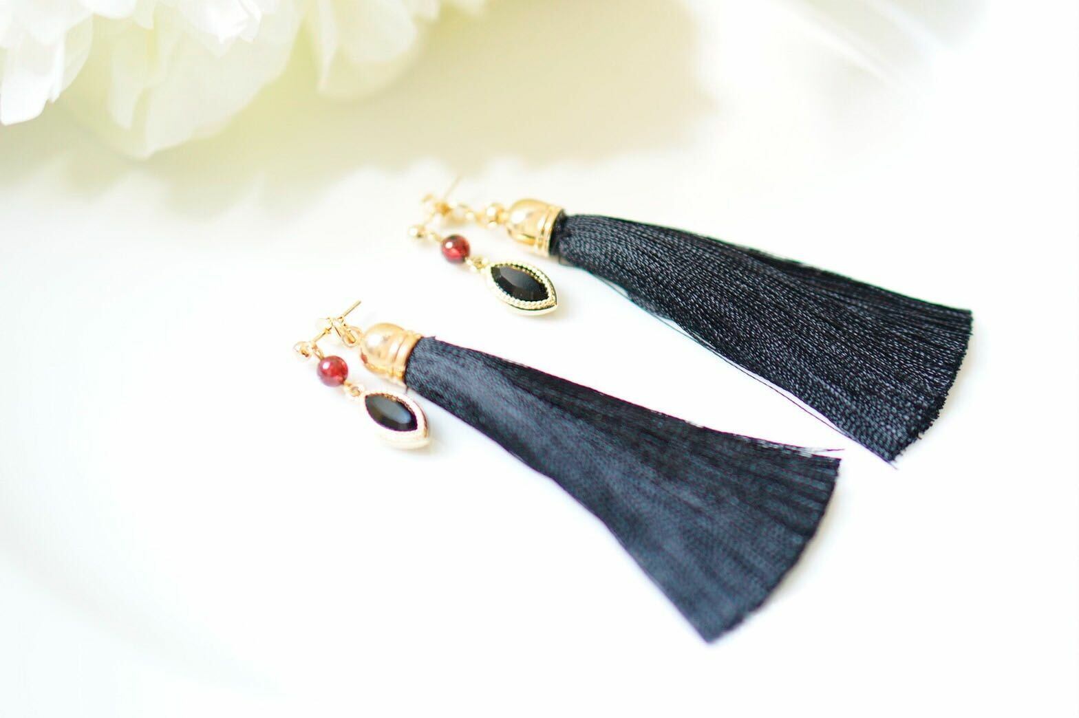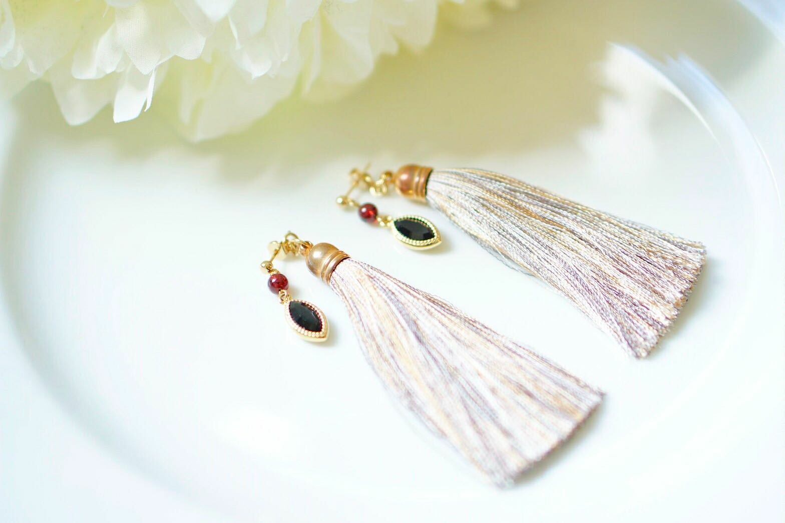 素材:14KGF・天然石(ガーネット)・スワロフスキーマーキス・タッセル